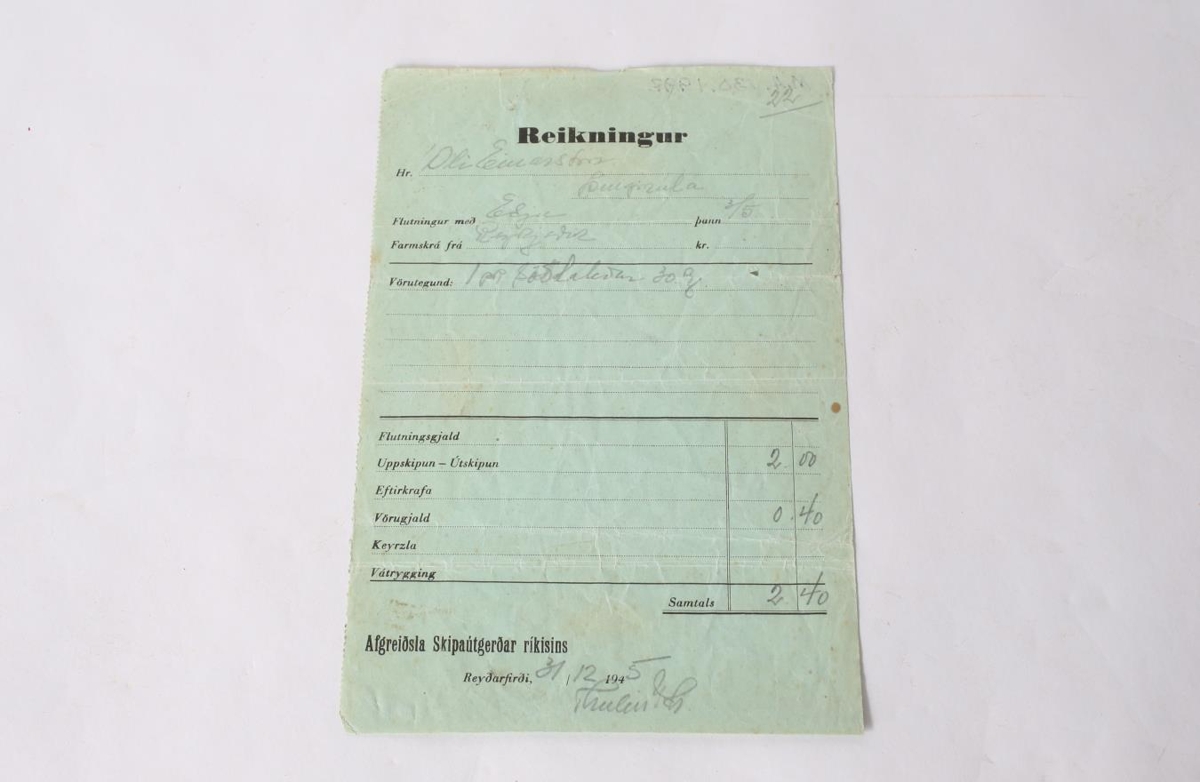 Reikningur frá Skipagerð ríkisins til Óla Einarssonar, vegna flutnings á söðlaleðri frá 13. desember 1945.