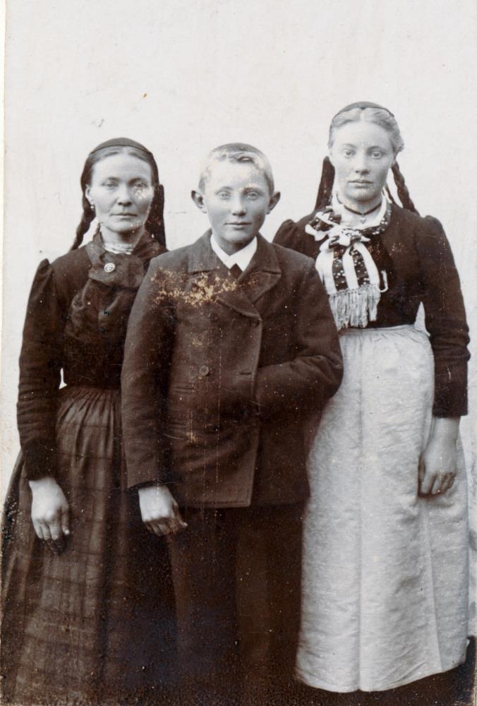 Fermingardagur Sigurjóns Magnússonar í Hvammi undir Eyjafjöllum. Þuríður Jónsdóttir, Sigurjón og Sigríður Einarsdóttir.