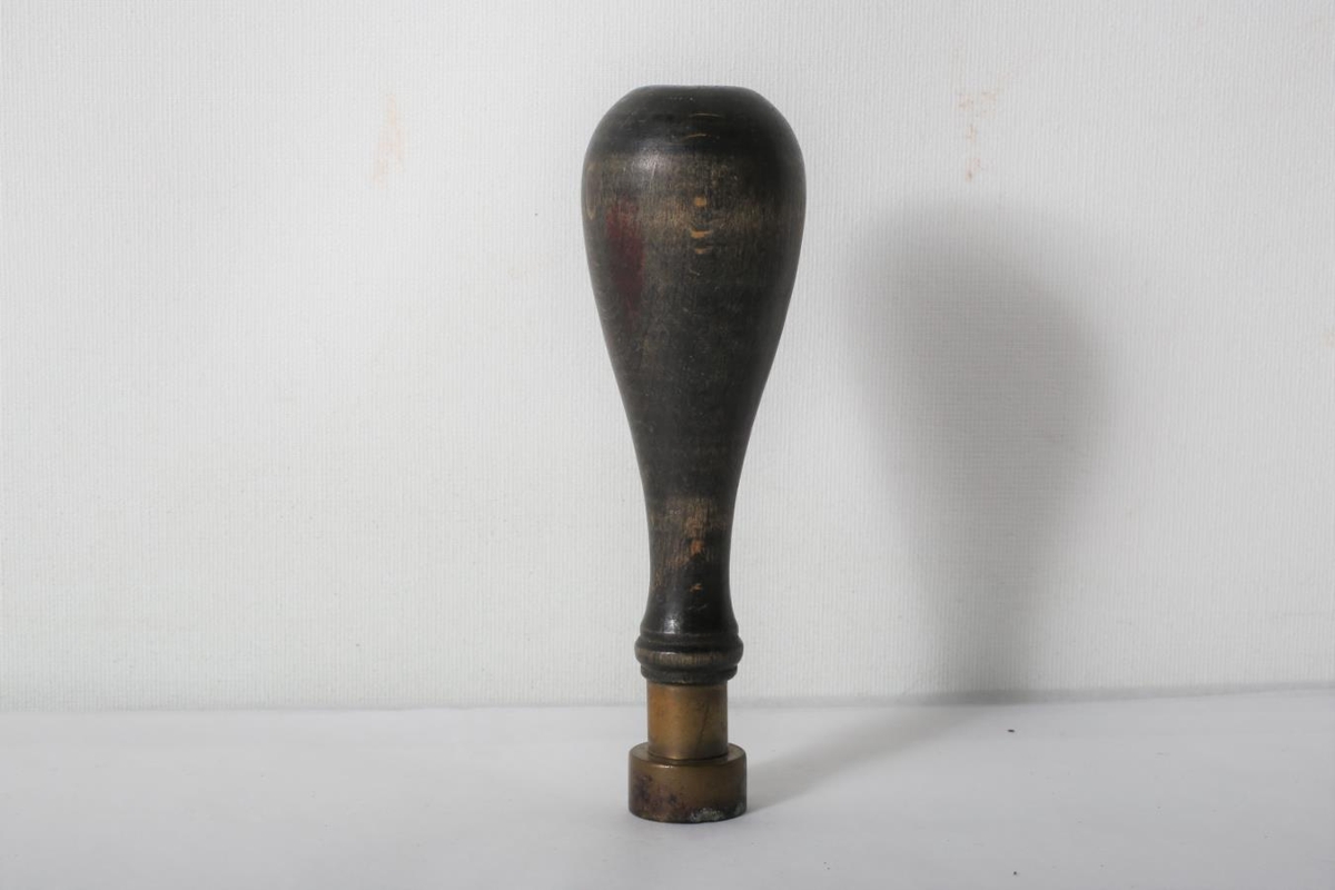Messing- og svartlitaður póststimpill. 299 - með tréskafti sem er breiðast efst. Úr dánarbúi Þorsteins Sigurðssonar, læknis.