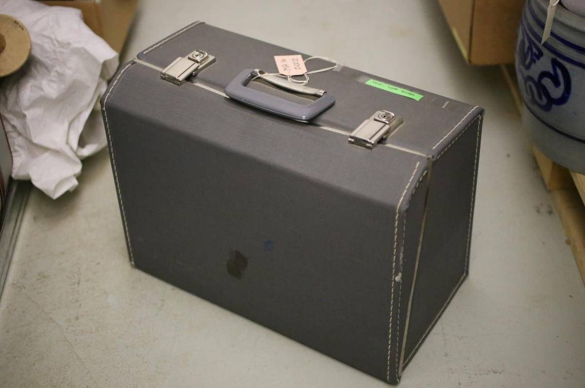 Husquarna 2000 saumavél, módel 60.20. Í grárri tösku með bleik-rauðröndóttu fóðri. Taskan er 42,5 cm á lengd, 22,5 cm á breidd og 29 cm á hæð. Með vélinni eru svartur saumavéla pedali, laust saumavélabretti, lítill bursti ásamt nokkrum saumaprufum og litlum kynningarbæklingi. Einnig fylgir lítill kringlóttur varahlutur í plastpoka. Úr eigu Erlu Salómonsdóttur, apótekarafrú. Vélin var keypt í júní árið 1971.