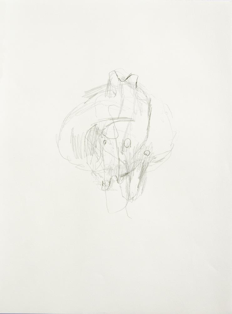 Upprunaleg blýantsteikning eftir Harald Jónsson frá 2013, en eftirprent af teikningunni er að finna í bókverkinu H O L D sem gefið var út 2014 í tengslum við sýningu listamannsins, H N I T í Hafnarborg.