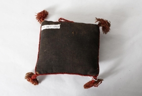 Svartur nálapúði, útsaumaður með krossaumi í miðju og þar eru stafirnir G.H.J. saumaðir í. Dúskar eru á öllum endum. Þessi púði tilheyrði Guðrúnu Helgu Jónsdóttur frá Höskuldsstöðum.