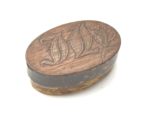Litlar sporöskjulaga öskjur. Hvalskíði í hliðum. Trébotn og lokplata úr eik, útskorin: JL og rós. Stærð 12,5x7,8 cm. Voru fyrst í eigu Jórunnar Loftsdóttur á Bakka í Landeyjum, f. 1839, d. 1915. Öskjurnar eru ekki yngri en frá um 1860.