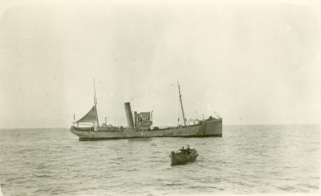 „... Allt bendir því til að þetta sé breskur togari, Þá má benda á að báturinn er með færeysku lagi sem ekki tíðkaðist hér og ekki verður betur séð en annar maðurinn í bátnum sé með færeyska húfu. Myndin því líklega tekin við Færeyjar. EF númerið er GY 269 þá væri þetta togarinn Walpole RE 239/GK 239. Þegar íslendingar keyptu skipið frá Grimsby 1920 var það með bátapall en ekki með loftskeytatæki. Í æfisögu Jóns Oddsonar skipstjóra, "'Í vesturvíking", en hann átti hlut í skipinu í Grimsby og var skipstjóri á því, er mynd af Walpole eins og skipið leit út meðan það var í þjónustu breska flotans í fyrra stríði. Skipin eru mjög lík, loftskeytabúnaðurinn t.d., en munurinn liggur í tveimur fallbyssum og fyrirkomulagi björgunarbáta. Það er alls ekki langsótt ágiskun að þetta sé mynd af Walpole eins og skipið leit út eftir að því var sleppt úr þjónustu breska flotans 1919, en áður en það var selt til íslands.“ (BÞ 2015)