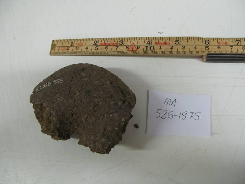 Grár, brotinn að hálfu. Hefir verið til að Heykollsstöðum að sögn Ásmundar en trúlaga fundinn í jörðu þar.