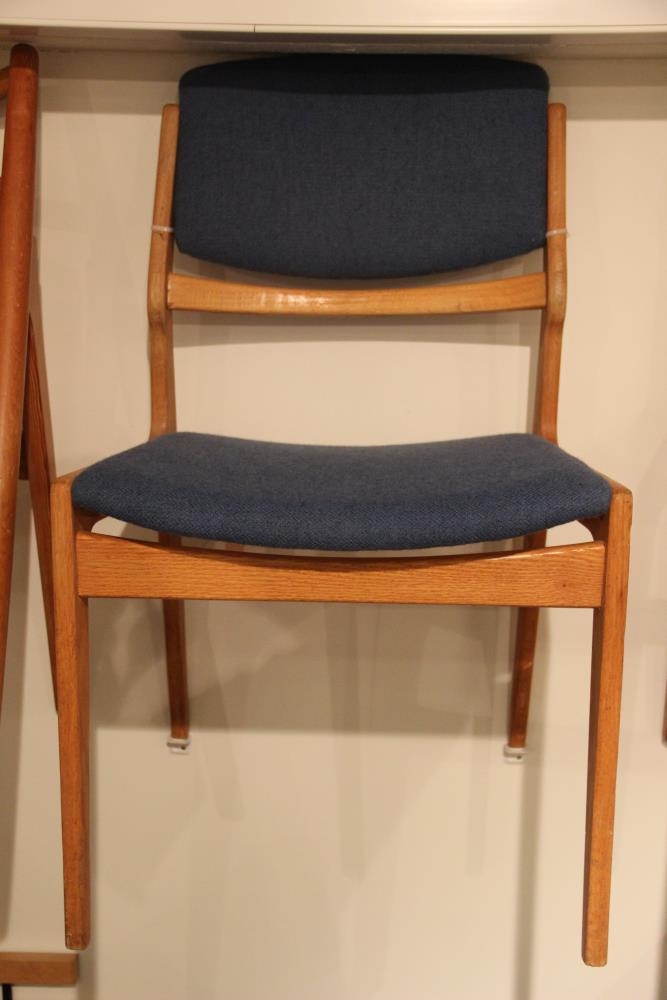Stóllinn er úr ljósri eik og bak og seta með ullaráklæði frá Gefjun á Akureyri