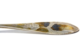 Teskeið úr silfri, íslensk. Skaftið er skreytt að ofanverðu með greftri og útrennslismynstri. Á neðanverðu skaftinu eru tveir stimplar, annars vegar smiðsstimpill: OPK eða OPR (aftasti stafurinn er orðinn máður), og hins vegar stimpill, væntanlega gæðastimpill, sem orðinn er of máður til að hægt sé að lesa úr honum. Skeiðin er Svövu Lárusdóttur, móður gefanda. Svava var fædd árið 1911 og lést árið 2002. Þór Magnússon, fyrrum þjóðminjavörður, telur skeiðina eldri en það að Svava hafi eignast hana nýja. Skeiðin er 14,5 cm löng, skeiðarblaðið um 4,5 cm langt og 2,5 cm breitt, en skaftið er breiðast 1,4 cm.
