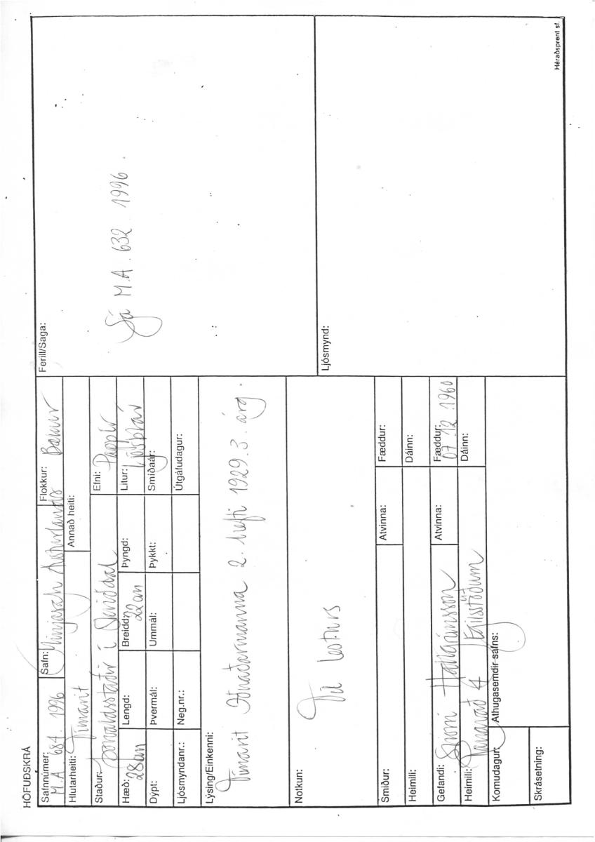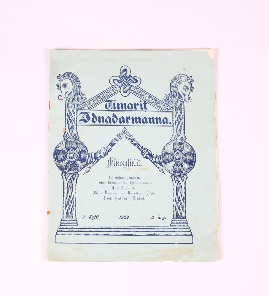 Tímarit iðnaðarmanna, 2. hefti 1929, 3. árg. Ljósblátt að lit og frekar vel með farið. Fannst á Þorvaldsstöðum í Skriðdal þegar verið var að að rífa gamla bæinn.