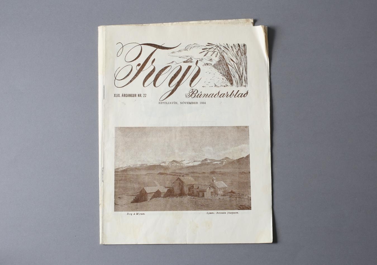 Freyr búnaðarblað, nóvember 1954. Fannst á Þorvaldsstöðum í Skriðdal þegar verið var að að rífa gamla bæinn.