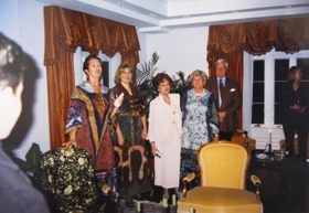 1. Sigríður Jóhannesdóttir myndlistarkona, Sigrún Jónsdóttir, Þórhildur Ellertsson húsmóðir og Mats Wibe Lund ljósmyndari (Bryndís, Sigríður og Þórhildur eru allar í kjólum eftir Sigrúnu Jónsdóttur).