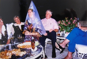 3. Mynd tekin á svölunum. Þar sjást hjónin Erlingur og Þórhildur Ellertsson. Bryndís ber þar höfuðbúnaðinn.