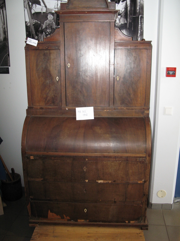 Vönduð smíði en nú nokkuð farið að láta á sjá. Hefur verið spónlagt með brúnum spæni og pólerað. Smíðað af Þorgrími snikkara á Gilsá í Breiðdal og stjúpsyni hans Halldóri Benediktssyni, síðar óðalsbónda á Skriðuklaustri. Líklega smíðað um 1870.