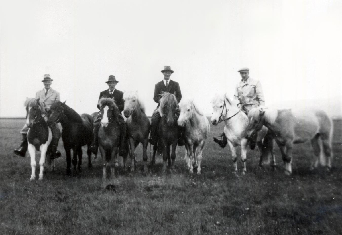 Bræðurnir Guðmundur, Erlendur, Helgi og Gunnar allir frá Hlíðarenda koma ríðandi að Borgareyrum að heimsækja systur sína Bóel.