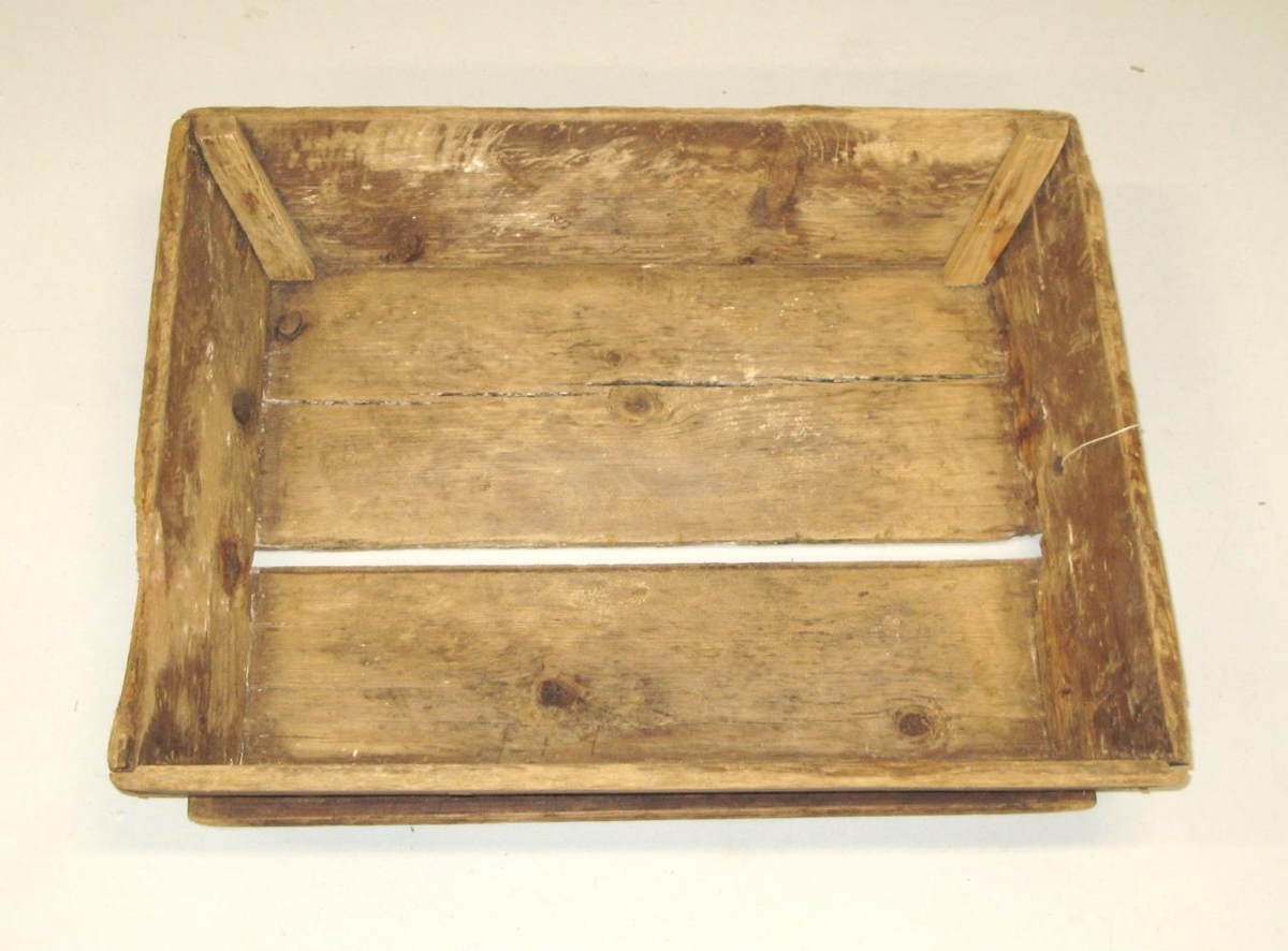 Smíðað úr rekaviði, orðið lélegt. Styrkt með spýtum í tveimur hornum. Úr búi Guðrúnar Bjargar Oddsdóttur frá Birnufelli og Hallgríms bónda hennar. Gefandi fékk trogið frá móður sinni, Agnesi Pálsdóttur, þegar hún hætti búskap árið 1935.