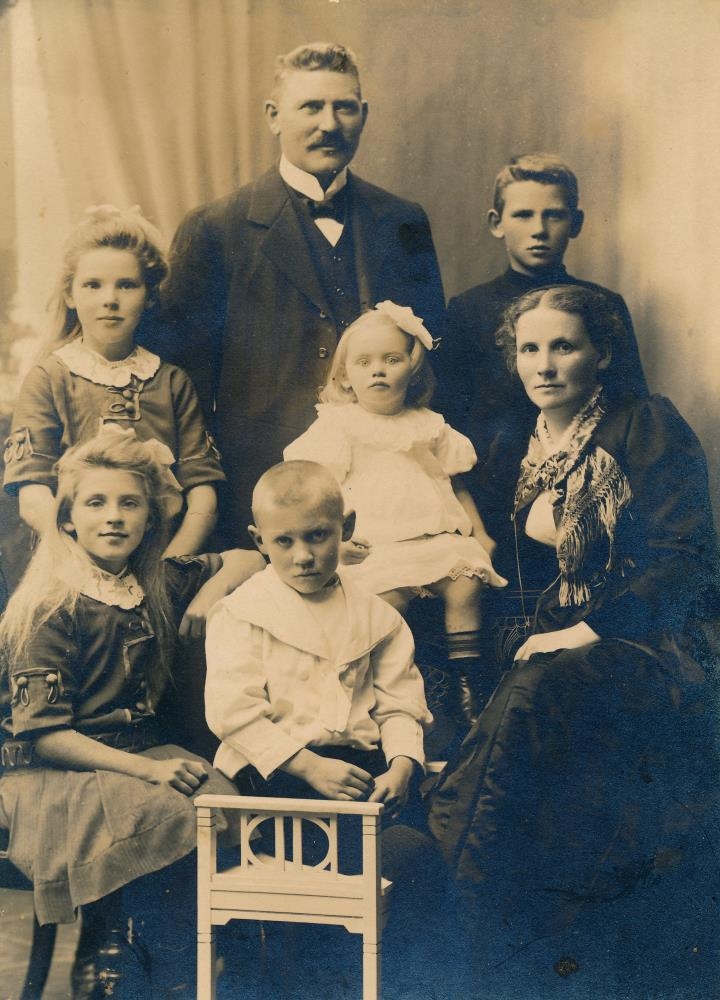 Aftari röð frá vinstri: Kara Briem (1900-1982), Sigurður Eggertsson Briem (1860-1952) póstmálastjóri, Gunnlaugur Briem (1901-1971).Fremri röð frá vinstri: Ása Briem (1902-1947), Ísleifur Briem (1904-1952), Sigrún Briem (1911-1944) og Guðrún Ísleifsdóttir (1876-1951) húsfreyja.