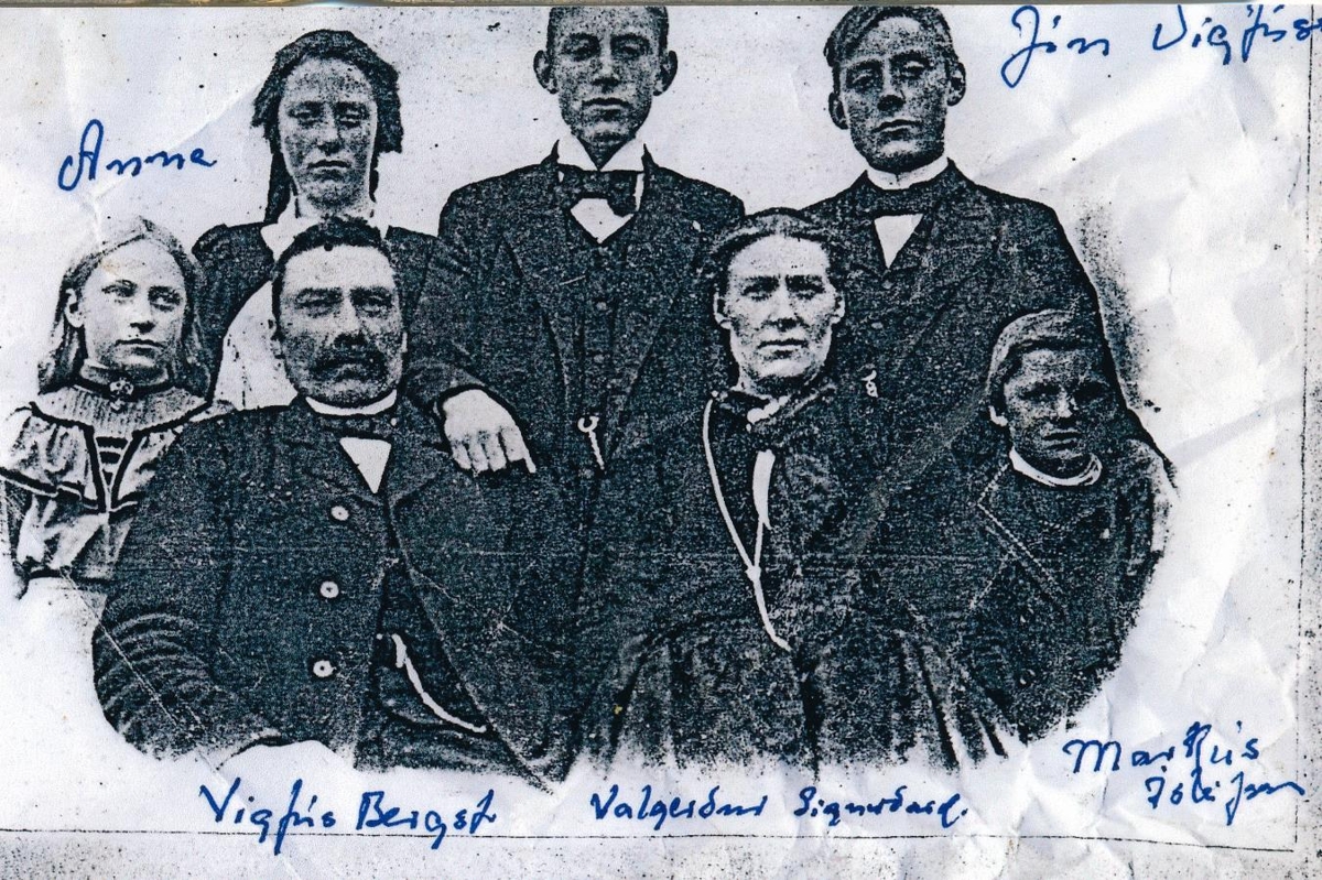 Hjónin Vigfús Bergsteinsson og Valgerður Sigurðardóttir á Brúnum undir Eyjafjöllum ásamt börnum sínum.