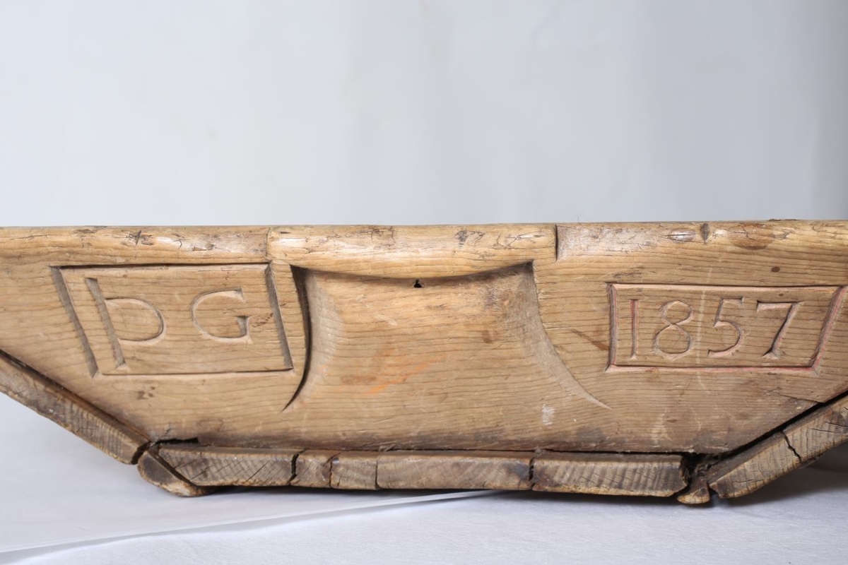 Mjög gamalt og slitið trog. Áletrun: "1857" og "ÞG" á öðrum endanum og á hinum endanum "GI". Trúlega úr búi Stígs Jónssonar föður Stígrúnar. Úr búi fósturforeldra gefanda, Jakobs Lillendahl og Stígrúnar Stígsdóttur, Akureyri.