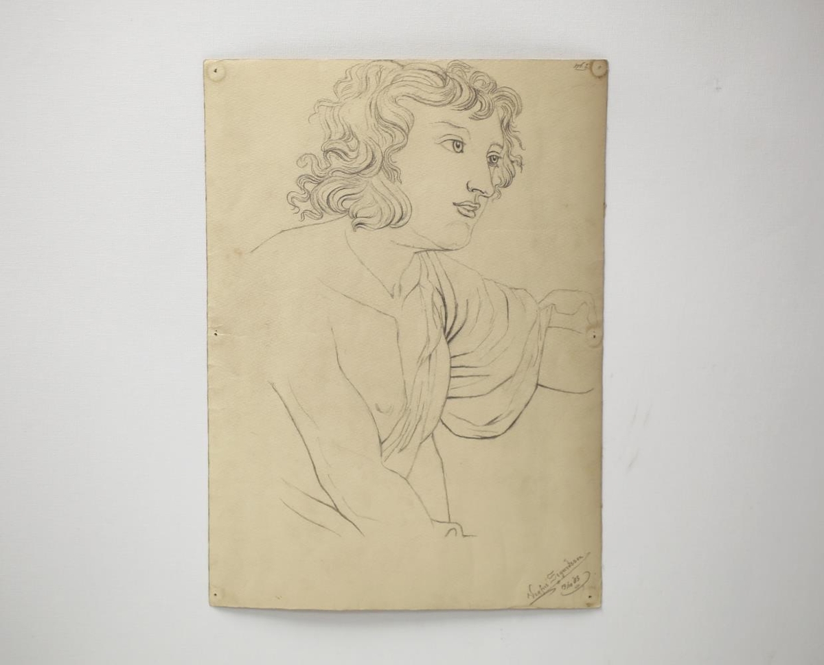 Blýantsteikning, sennilega eftir styttu eða málverki. Merkt "Vigfús Sigurðsson 19/10 ´03". Úr eigu Vigfúsar Sigurðssonar (f.3.08.1880 d.13.09.1943) frá Egilsstöðum í Fljótsdal.