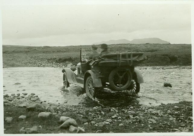 Bíll á leið yfir á á leiðinni milli Stykkishólms og Borgarnes.