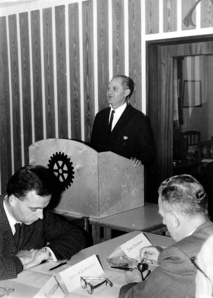 Stofnfundur stjórnunarfélagsins.Ásgrímur Stefánsson í ræðustól.