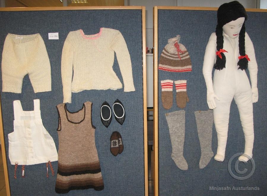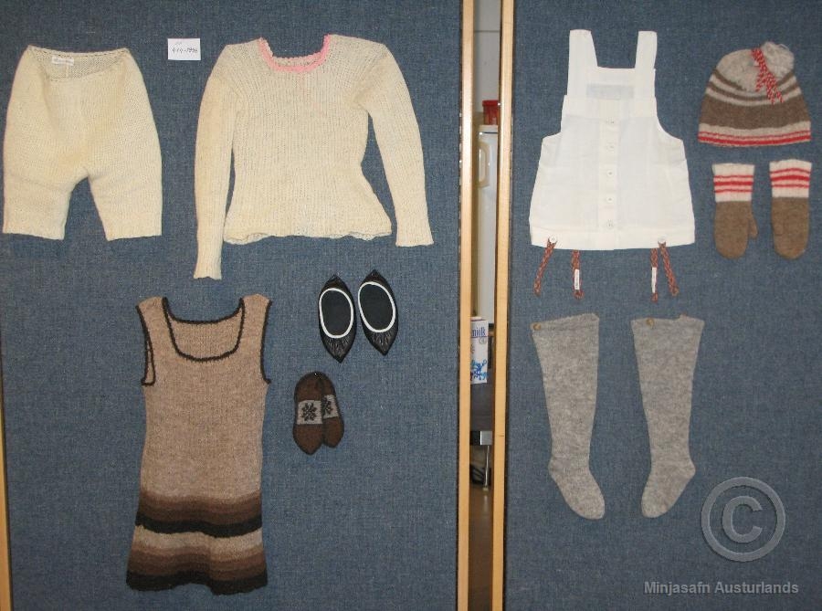 Hvítt kot með axlarhlýrum. Hneppt að framan með tautölum. Unnið eftir gamalli fyrirmynd.