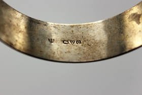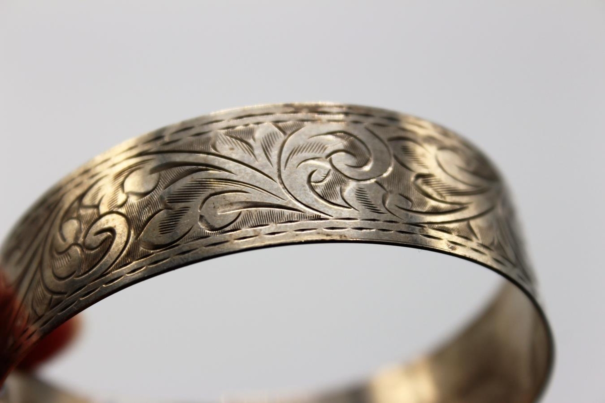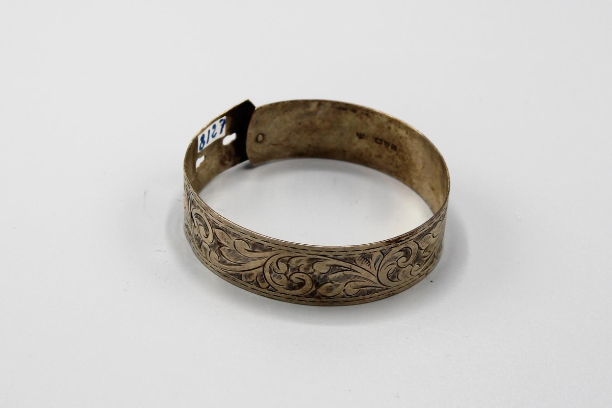 Silfurarmband, skrautgrafið. Stimplað, JS, einnnig ráðstofustimplill (?), enskt fremur en danskt. Er frá byrjun 20. aldar. Lengd 22 cm, br. 2 cm. Fjórgatað.