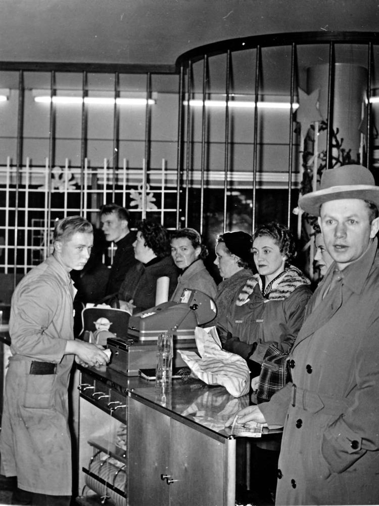 Kalli Tomm, að afgreiða Steingrímssystur ofl.
