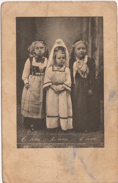 Póstkort - Íslensku þjóðbúningarnir. Fríða Guðmundsdóttir 1905-1987, Guðrún Sigríður Jakobsdóttir Watson (1908-1972) og Vigdís Jakobsdóttir (1906-2001).