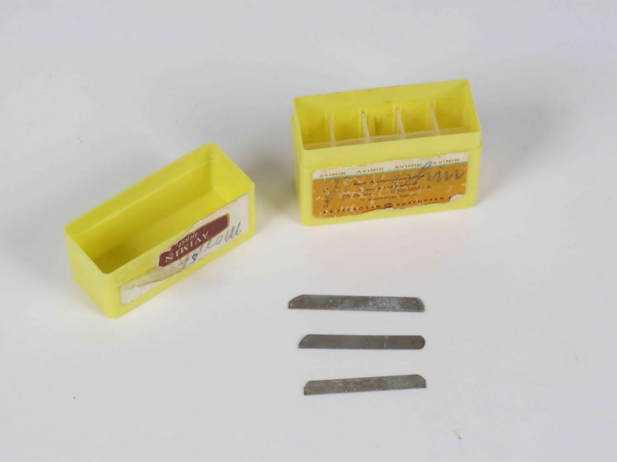 Box utan um ampúlur. Box fyrir 10 ampúlur, gult. (Í því eru 3 hnífsblöð).