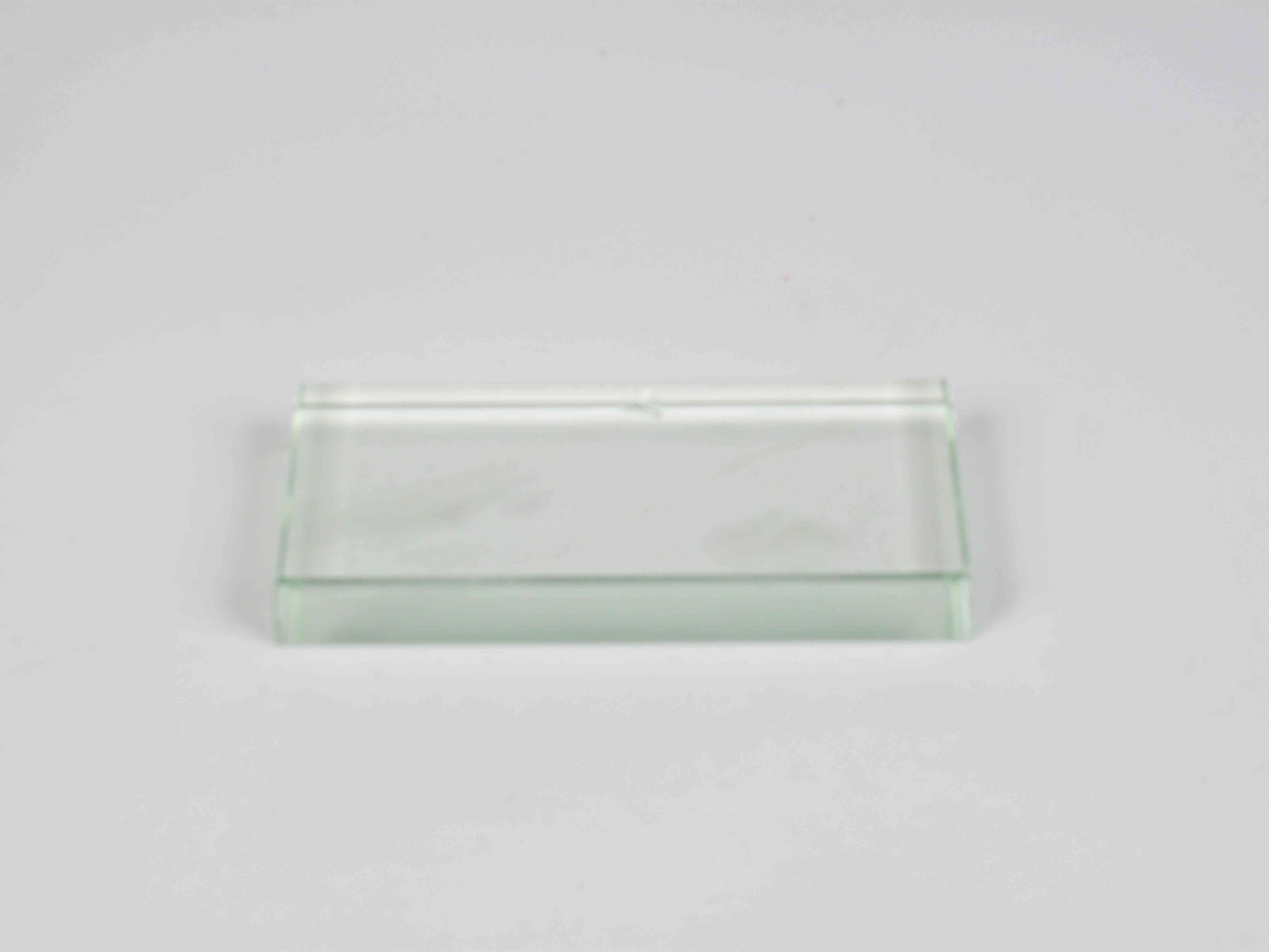 Glerplata, á henni voru hrærð og blönduð efni.