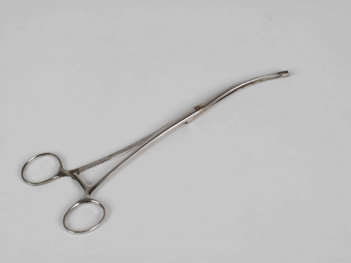 Maga og þarmaklemma, endinnn beygist til hliðar.