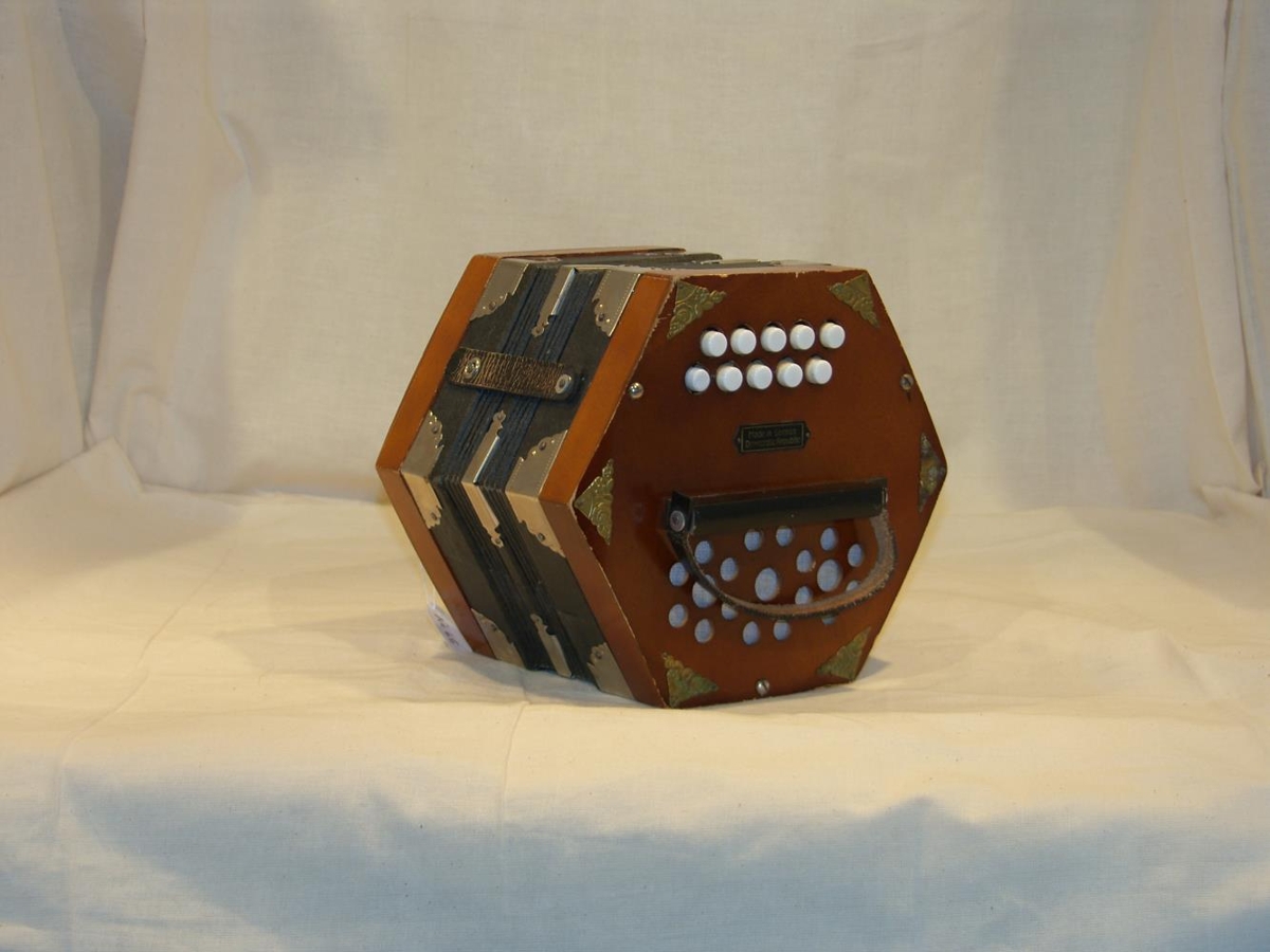 Konsertína af gerðinni BACAROLE, 21 nótur á hvorri hlið. Framleidd í A-ÞýskalandiÓlafur sem er kennari við Fjölbrautarskóla Suðurlands, fékk hljóðfærið að gjöf frá einum nemanda sínum fyrir nokkrum árum.