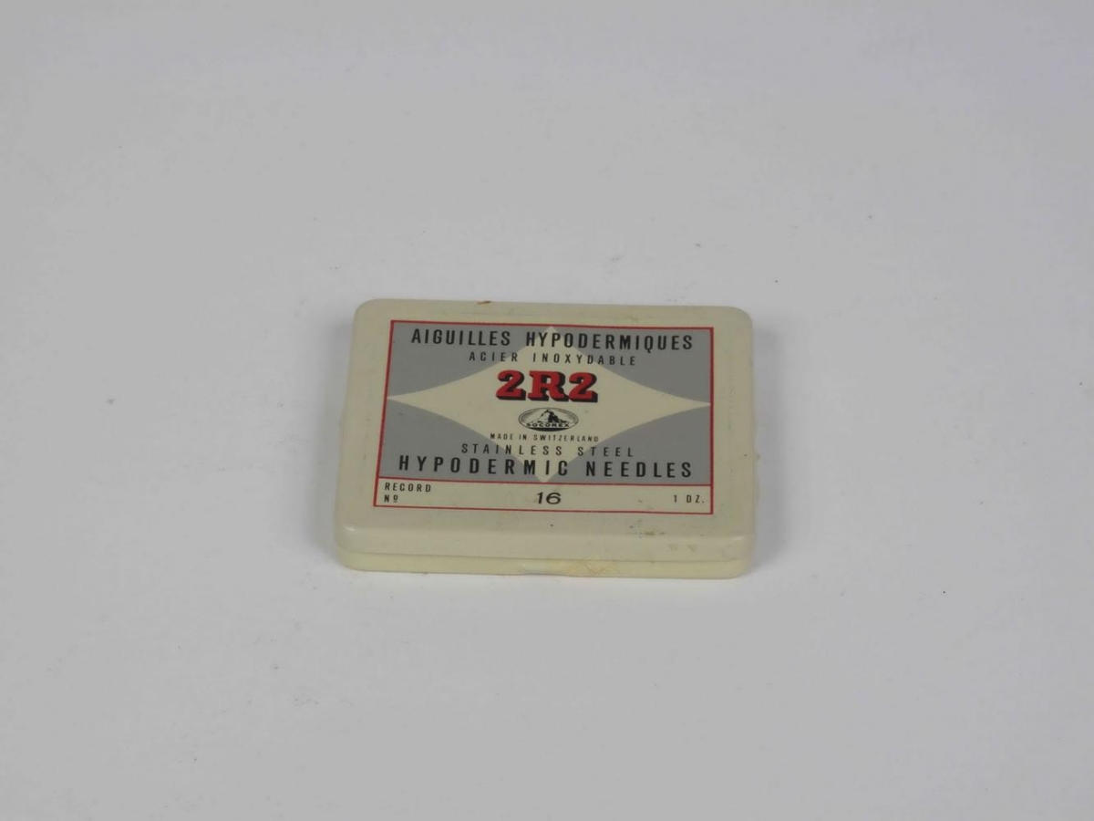 Sprautunálar. Nálarnar eru í litlum kassa ásamt 2 hnífsblöðum.