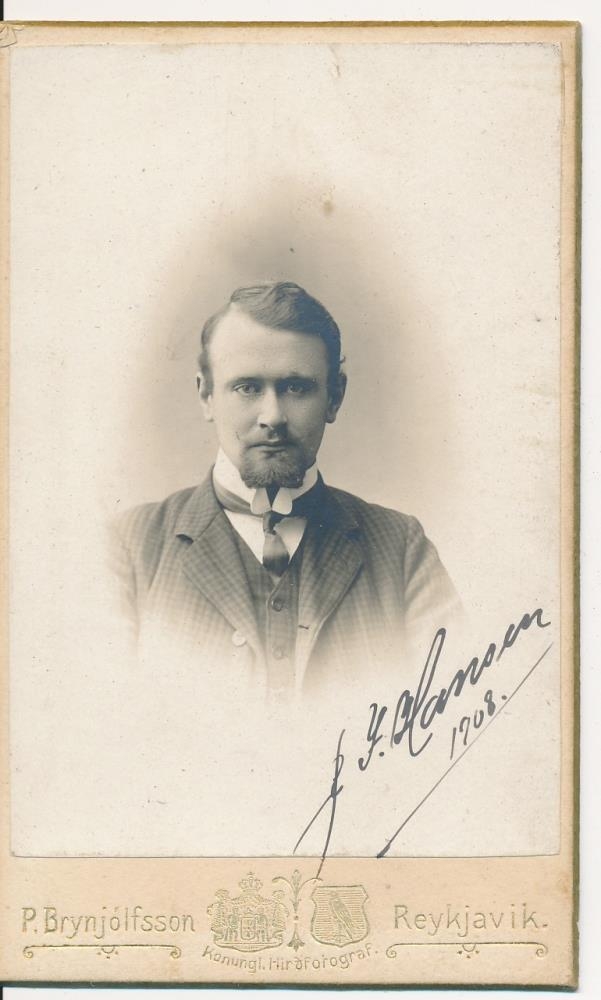 Karlmaður. Ljósmynd úr búi Kristjáns Jóhannessonar (1866-1910) kaupfélagsstjóra á Eyrarbakka. Eftir lát hans voru synir hans Sigurður kaupmaður á Eyrarbakka og Jóhannes búsettur í Reykjavík, með ljósmyndina sem varðveitt var í myndaalbúmi. Kristján sonur Sigurðar gaf fjórar ljósmyndamöppur á Byggðasafn Árnesinga í október 2015 og er ljósmyndin úr því safni.
