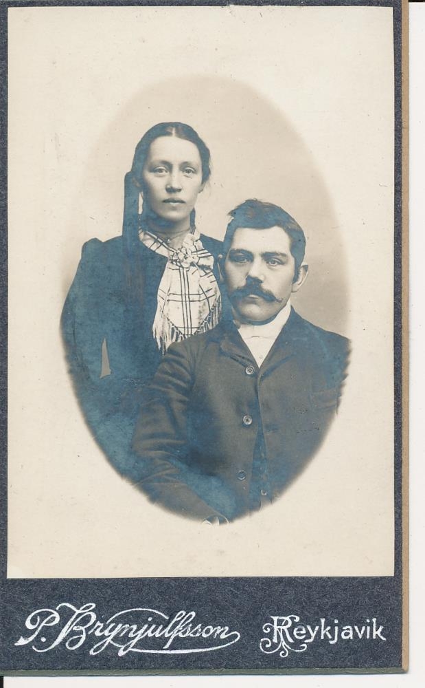 Ingibjörg Magnúsdóttir (1880-1949) og fyrri eiginmaður hennar Eyvindur Eyvindsson (1880-1906) sem fórst með fiskiskipinu Sophiu. Ljósmynd úr búi Kristjáns Jóhannessonar (1866-1910) kaupfélagsstjóra á Eyrarbakka. Eftir lát hans voru synir hans Sigurður kaupmaður á Eyrarbakka og Jóhannes búsettur í Reykjavík, með ljósmyndina sem varðveitt var í myndaalbúmi. Kristján sonur Sigurðar gaf fjórar ljósmyndamöppur á Byggðasafn Árnesinga í október 2015 og er ljósmyndin úr því safni.