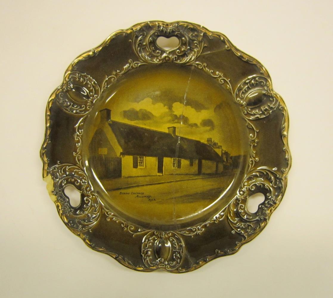Kökudiskur brúnn að lit, gyllt rönd umhverfis, þvermál 22 cm og á barminum eru þrjú hjartalaga göt. Á miðjunni er mynd af húsi, fyrir neðan húsið stendur Burn´s cottage. Það mun vera fæðingarstaður skoska skáldsins Robert Burns og núverandi safn. Diskurinn er frá Hvítárósi.