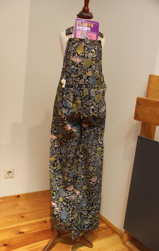 Flautubuxur frá Fatagerðinni Burkna. Buxurnar eru marglitar og eins og nafnið gefur til kynna fylgdi slíkum buxum flauta.