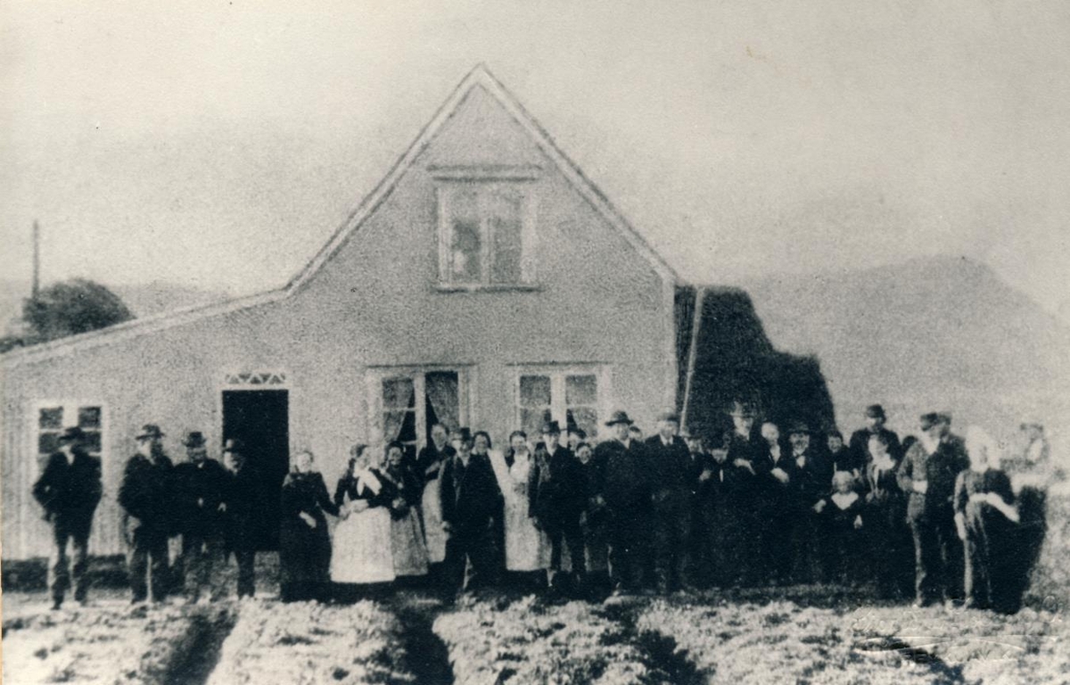 Hópur fólks á hlaðinu í Fellsmúla á Landi. Gestur Sveinsson, Flagveltu, Lýður Árnason, Hjallanesi, Oddur Jónsson, óþekktur, Margrét Sigurðardóttir frá Framnesi, Margrét Vigfúsdóttir frá Framnesi, Guðrún Kolbeinsdóttir, Skarði, Sigríður Gestsdóttir, Flagveltu, Ingimundur Benediktsson, Kaldárholti, Guðrún Jónsdóttir, Hvammi, Guðríður Jónsdóttir, Hvammi, óþekktur, Ólafur Brynjólfsson, Fellsmúla, Elías Þórðarson, Saurbæ, Eyjólfur Þórðarson, Stúfholti, óþekkt, óþekktur, Sigurður Guðmundsson, Selalæk, Ingigerður Gunnarsdóttir, Selalæk, Ófeigur Vigfússon, Fellsmúla, Sigríður Sigurðardóttir, Hjallanesi, Grétar Ófeigsson Fells, Þórður Steindórsson, Ólafía Ólafsdóttir, Fellsmúla, Þórður Þórðarson, Hjallanesi. óþekktur, Guðlaug Vigfúsdóttir, Hjallanesi, ensk stúlka. Í glugga má sjá Sigríði Eiríksdóttur vinnukonu í Fellsmúla.