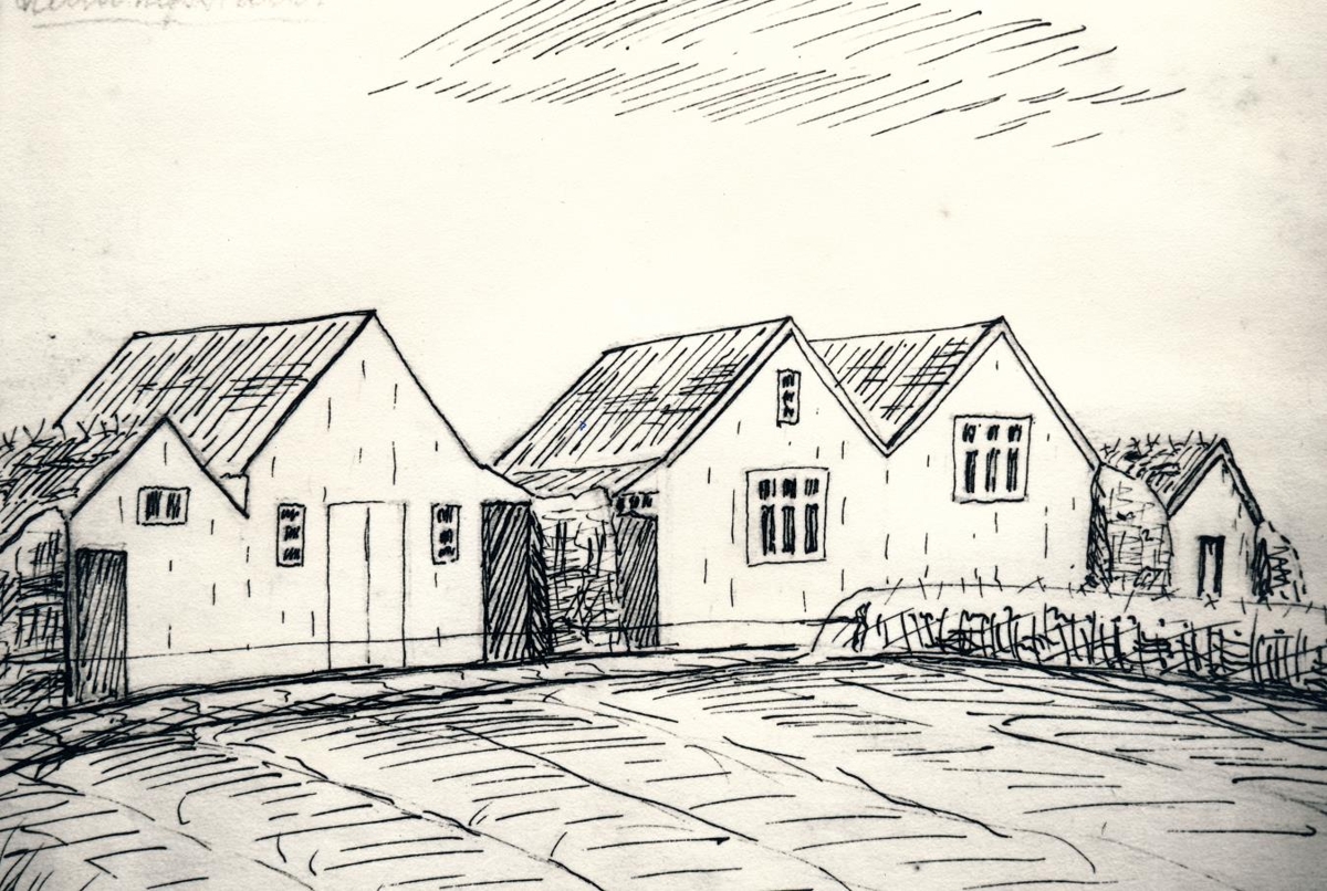 Teikning af torfbænum á Rauðnefsstöðum í Rangárþingi ytra.