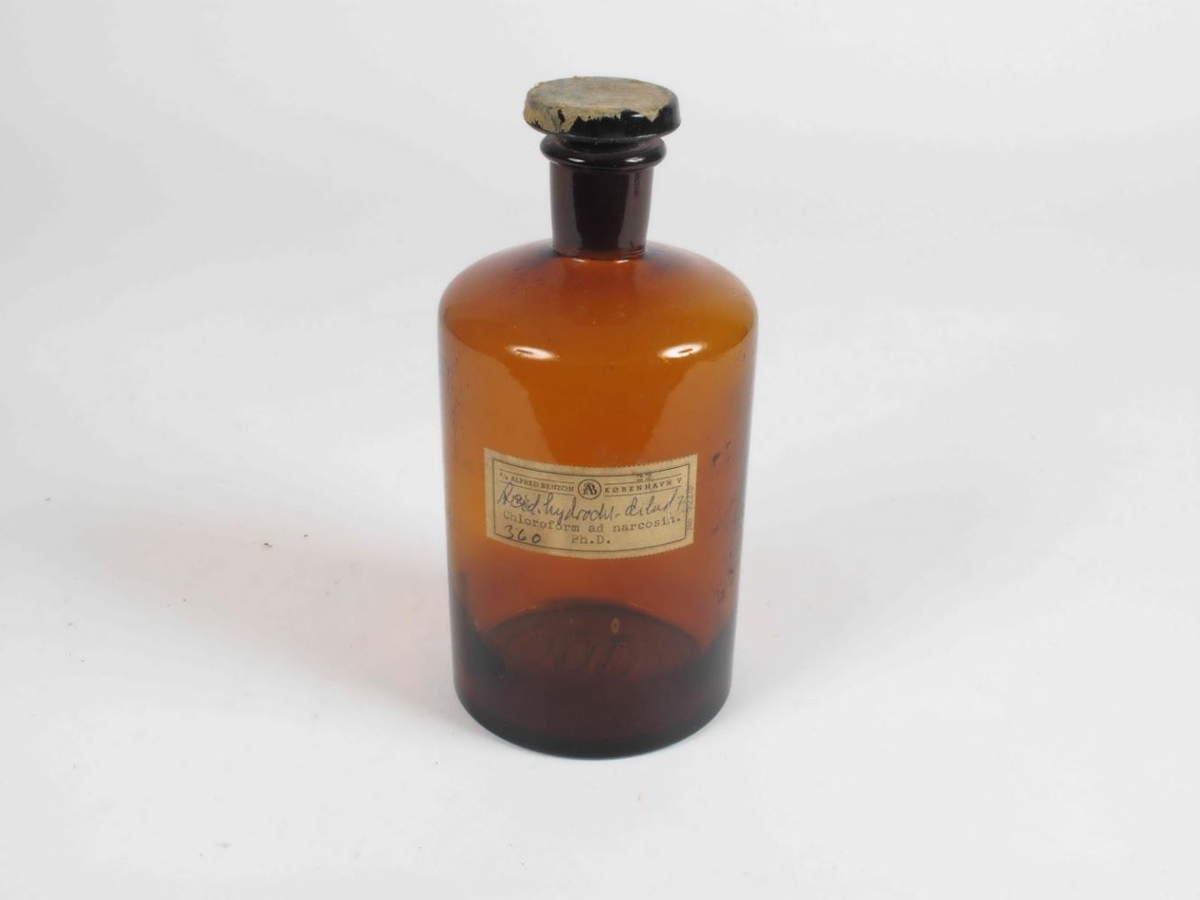 Á flöskunni stendur: Chloroform ad narcosin / Ph.D.