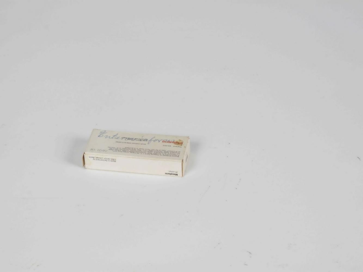 Go Back To SearchDo you know more?Save to My CollectionPrintCopy linkOrder a photoTerms of UseLyf, f. dýrIn preservation atNational Museum of IcelandÁ kassanum stendur Mexaform / 20 töflur.Main informationCiba Vision, Attributed Ásgeir Ólafsson Einarsson, Used by Donor: Ásgeir Ólafsson EinarssonMaterialLífræn efni, Pappír, Pappi Ólífræn efni, Málmur, StálObject-related numbersMuseumnumber a: NS-7094 "Museumnumber b": 1996-807Dimensions8 x 4 x 2 Lengd: 8 Breidd: 4 Hæð: 2Record typeArtifactCollectionUndirskrá: Lækningaminjasafnið_Nesstofusafn (NS)KeywordsKeyword: Lyf, f. dýr