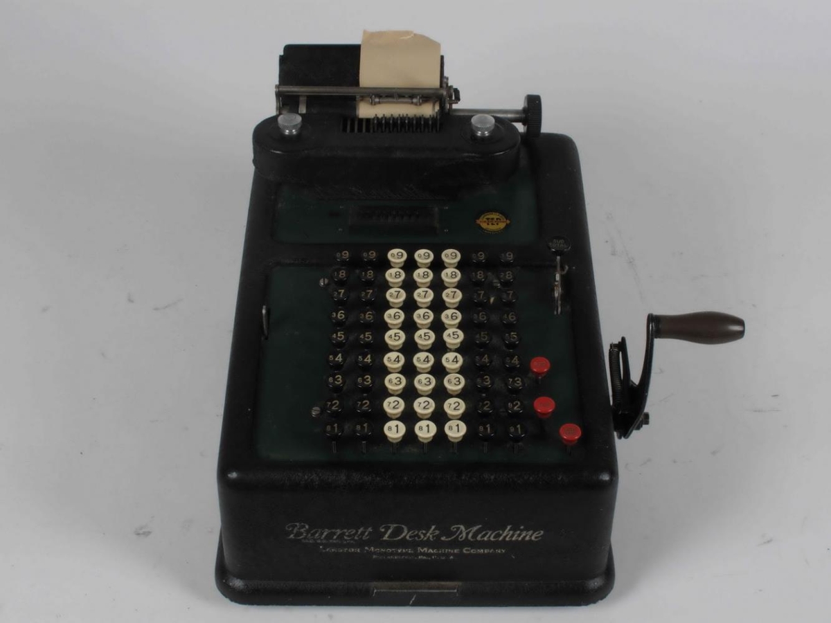 Græn á litinn. Jón Sigurðsson, gefandi vélarinnar, segir hana hafa verið á skrifstofu Vilmundar Jónssonar, landlæknis, í Arnarhvoli. Seinni maður ömmu Jóns var húsvörður, Helgi Guðmundsson, í Arnarhvoli. Hann tók vélina til handargagns þegar átti að fleygja henni. Síðustu árin hefur vélin verið í geymslu hjá dóttur húsvarðarins.