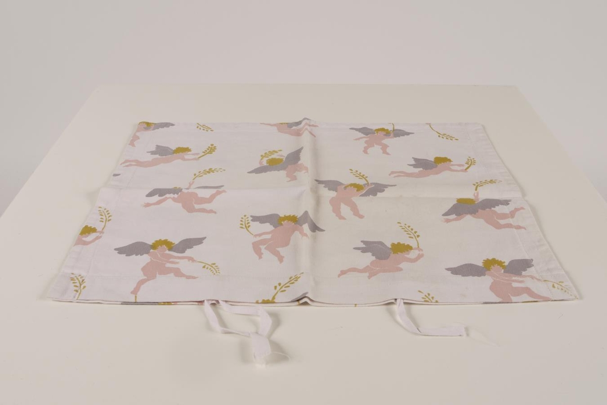 Handþrykkt efni, englamunstur.Koddaver með vinsælustu litasamsetningunni.