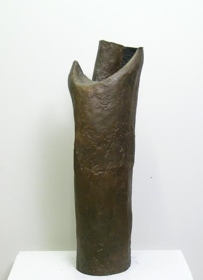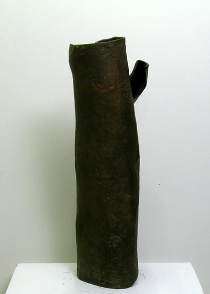 0,7 cm þykk bronsplata sem er rúllað upp og stendur upp á endann.
