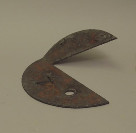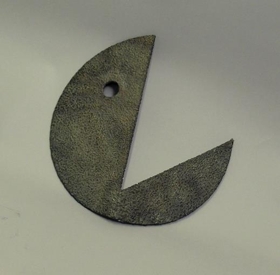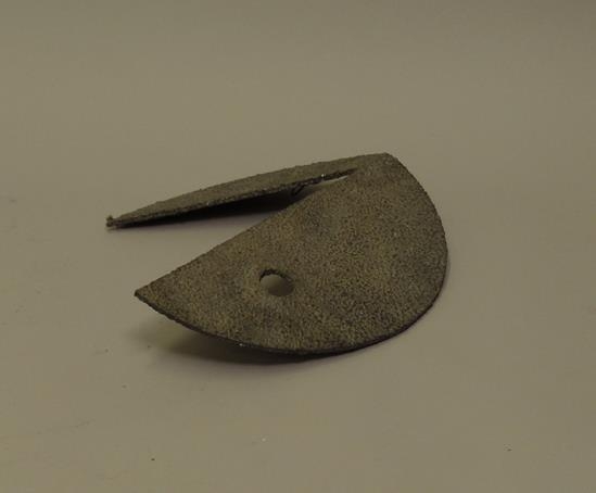 Kringlótt útskorin og sveigð járnplata meðhöndluð með punktsuðu á efraborði.