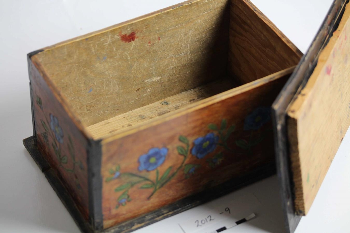 Sigurður Þorsteinsson smíðaði kistilinn fyrir móður sína Arellý Þorsteinsdóttur og er hann merktur með "A". og er smíðaður undir handleiðslu Önnu Lúðvíksdóttur.
