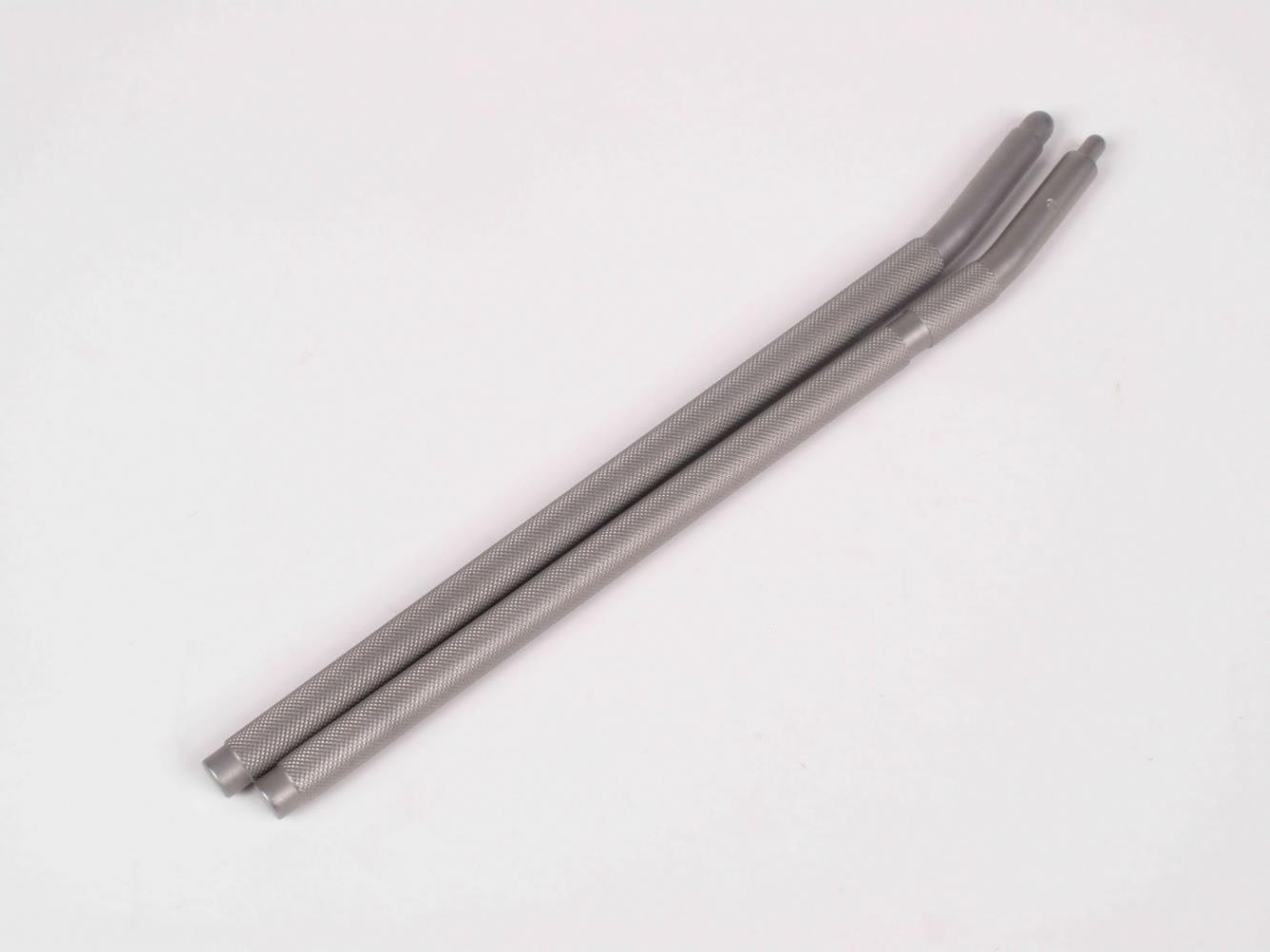 Harrington innsetjari, ryðfrítt stál, 2 stk. Innsetjari (handfang) fyrir Harrington króka, boginn, 2 gerðir, með öðrum enda þannig að hann passar í sitt hvora stærðina af krók. Handfangið rifflað. Samskonar handföng eru einnig framleidd bein. Catalog nr:1268 og 1269.