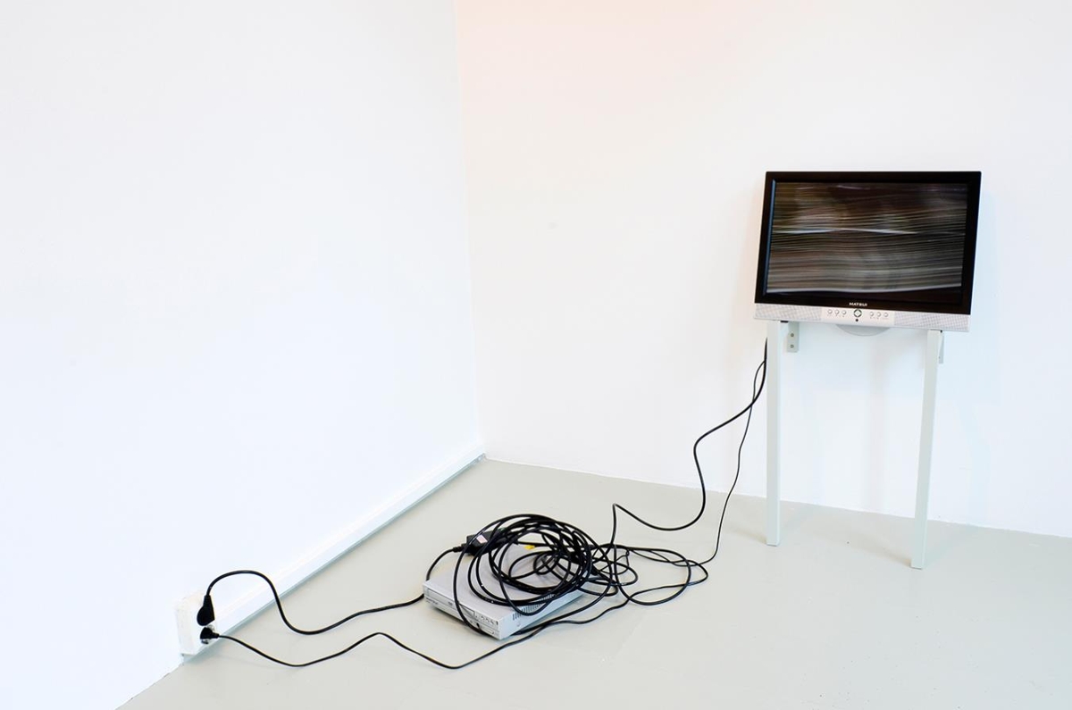 5) Vídeó á stultum upp við vegg, án hljóðs en í lit, (ath hökt í upprunalegu myndbandi, á að vera í verkinu)