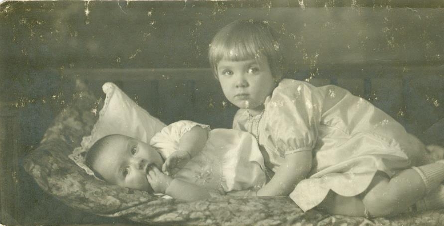 Ung systkini annað liggur og hitt hallar sér að því yngra.