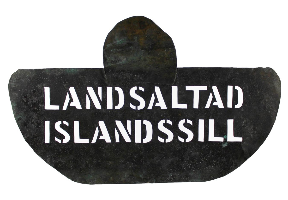 Botnamerki, neðribotnamerki. Á merkinu stendur: Landsaltad Islandssill.
